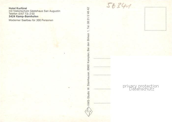 73866815 Bornhofen Kamp Hotel Kurfuerst Historisches Gaestehaus San Agustin Kirchturm postalisch nicht gelaufen Erhaltung siehe scans [FriedD77] KatCode: 11110007141066