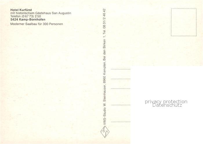 73856253 Bornhofen Kamp Hotel Kurfuerst Historisches Gaestehaus San Augustin postalisch nicht gelaufen Erhaltung siehe scans [FriedD77] KatCode: 11110007141066