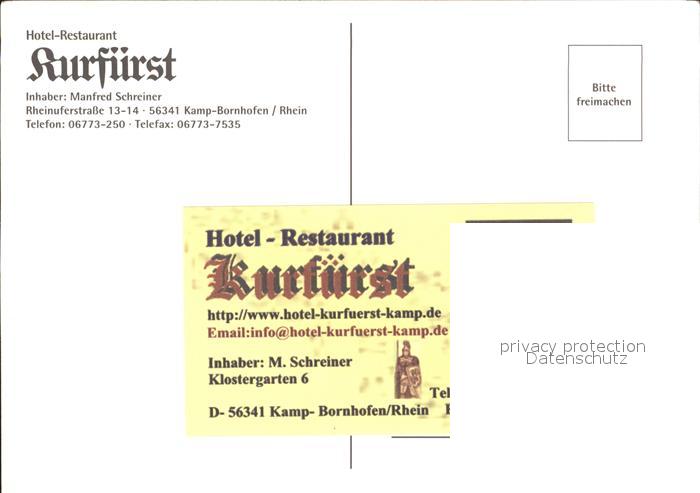 72263458 Bornhofen Kamp Hotel Restaurant Kurfuerst postalisch nicht gelaufen Erhaltung siehe scans KatCode: 11110007141066