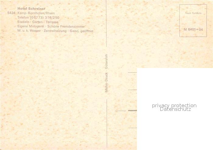 72666396 Bornhofen Kamp Hotelbetriebe Schreiner Restaurant Cafe postalisch nicht gelaufen Erhaltung siehe scans [FriedD77] KatCode: 11110007141066