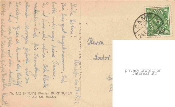 72759481 alte Postkarte Bornhofen Kamp Kloster und feindliche Br?der postalisch gelaufen Erhaltung siehe scans [LiesaD40] KatCode: 11110007141066