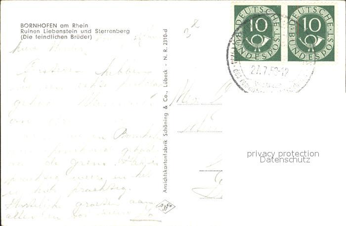 72089440 alte Postkarte Bornhofen Kamp Ruinen Liebenstein und Sterrenberg postalisch gelaufen Erhaltung siehe scans KatCode: 11110007141066
