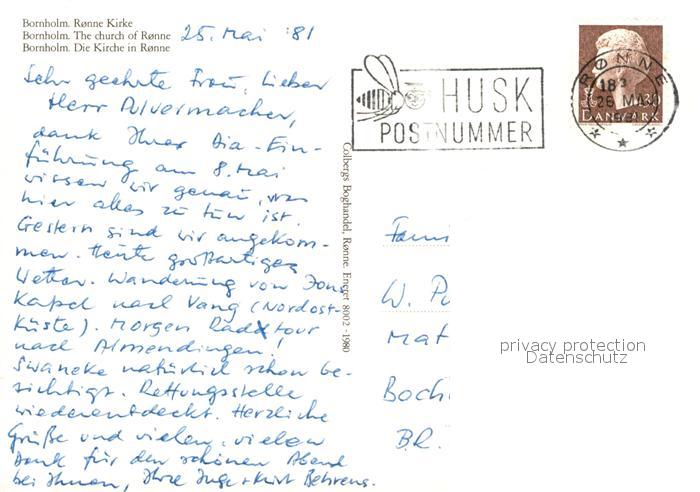 old postcard Bornholm Ronne Kirke postalisch gelaufen Erhaltung siehe scans [WerneD78]