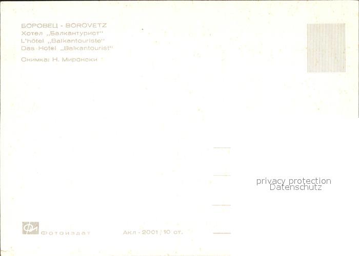 Borovetz Hotel Balkantourist postalisch nicht gelaufen Erhaltung siehe scans