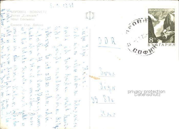 old postcard Borovetz Hotel Edelweiss postalisch gelaufen Erhaltung siehe scans