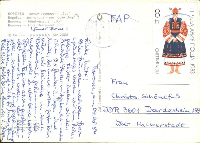 old postcard Borovetz Hotel Restaurant Bor postalisch gelaufen Erhaltung siehe scans