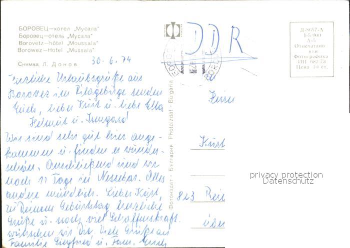 old postcard Borowez Bulgarien Hotel Mussala postalisch gelaufen Erhaltung siehe scans