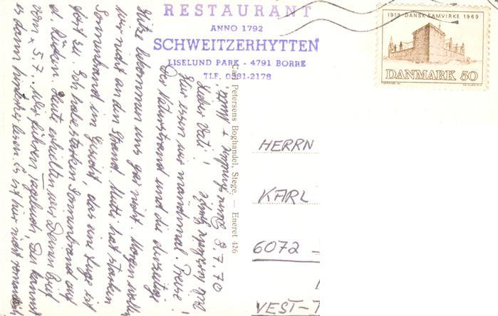 old postcard Borre DK Schweitzerhytten Restaurant Liselund Park postalisch gelaufen Erhaltung siehe scans [FriedD77]