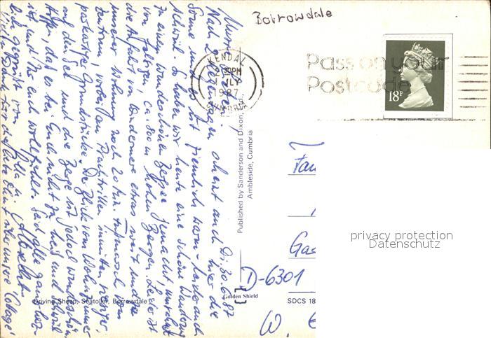 old postcard Borrowdale Drivine Sheep postalisch gelaufen Erhaltung siehe scans