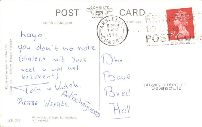 old postcard Borrowdale Watendlath Bridge postalisch gelaufen Erhaltung siehe scans