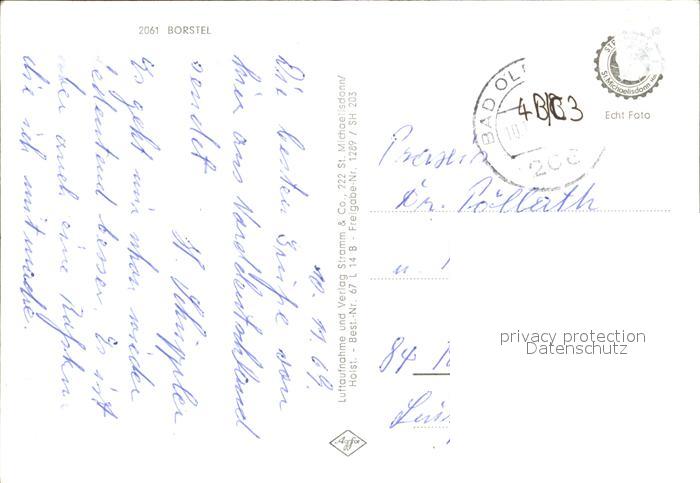 72072591 alte Postkarte Borstel Bad Oldesloe Fliegeraufnahme postalisch gelaufen Erhaltung siehe scans KatCode: 11110001060085