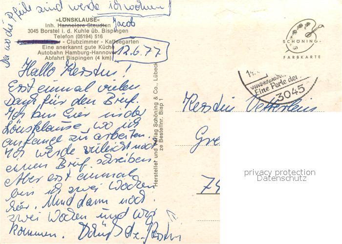 73641384 alte Postkarte Borstel Bispingen Loensklause Restaurant Cafe Terrasse postalisch gelaufen Erhaltung siehe scans [FriedD77] KatCode: 11110003358002