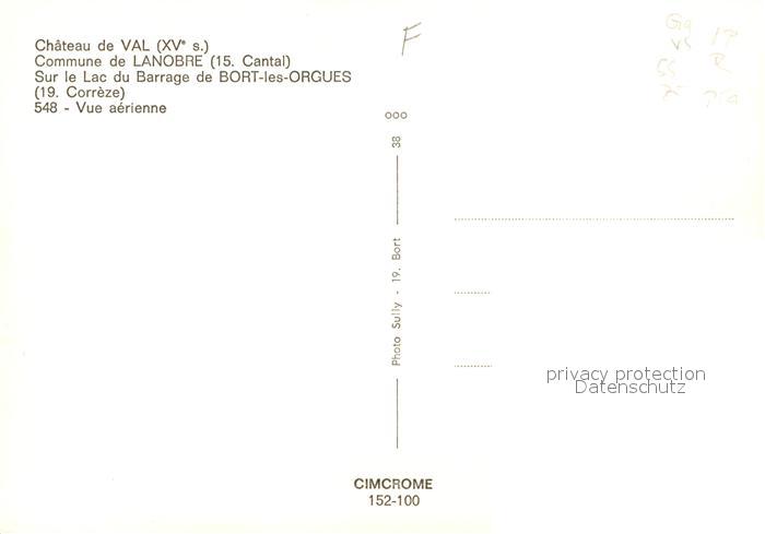 13326320 carte postale Bort-les-Orgues Chateau de Val Vue aerienne postalisch gelaufen Erhaltung siehe scans [WerneD78] KatCode: 11170019319028