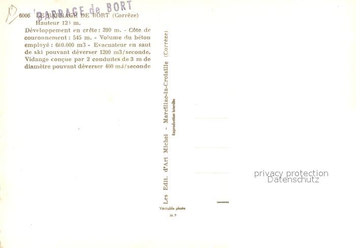 13594452 Bort-les-Orgues Le Barrage postalisch nicht gelaufen Erhaltung siehe scans [FriedD77] Frie Katcode 11170019319028
