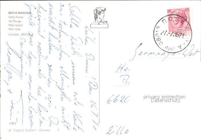 old postcard Bosa Marina Isola Rossa veduta aerea Rote Insel postalisch gelaufen Erhaltung siehe scans