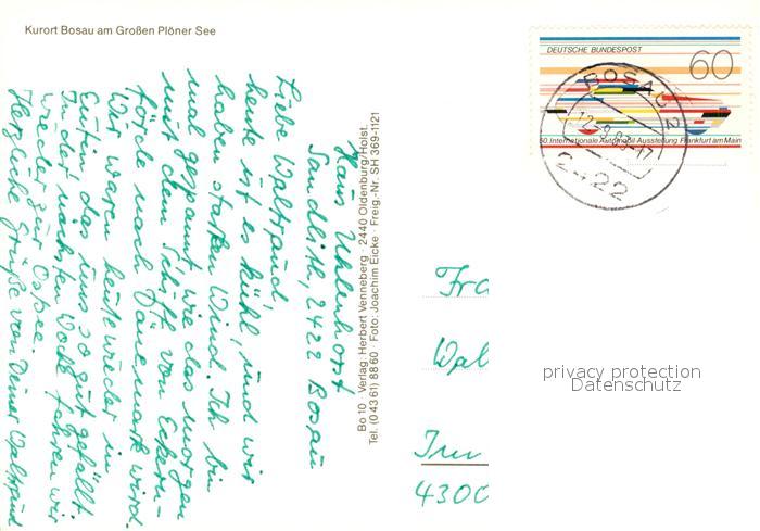 73541986 alte Postkarte Bosau am grossen Ploener See Fliegeraufnahme postalisch gelaufen Erhaltung siehe scans [WerneD78] KatCode: 11110001055007