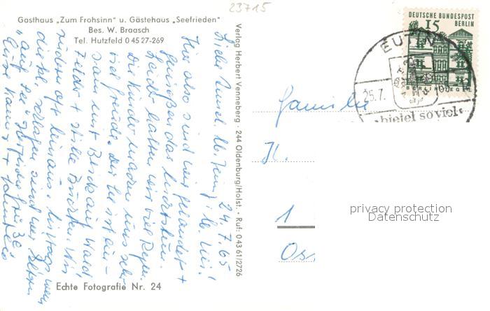 73669902 alte Postkarte Bosau Gasthaus Zum Frohsinn und Gaestehaus Seefrieden postalisch gelaufen Erhaltung siehe scans [WerneD78] KatCode: 11110001055007
