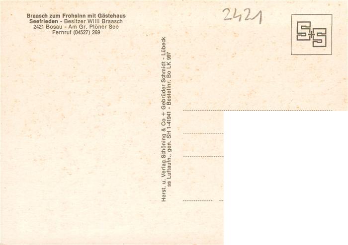 73940332 Bosau Ostholstein Braasch zum Frohsinn mit Gaestehaus Seefrieden am Gr Ploener See Fliegeraufnahme postalisch nicht gelaufen Erhaltung siehe scans [FriedD77] KatCode: 11110001055007