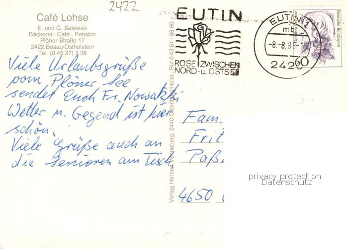 73864914 alte Postkarte Bosau Ostholstein Cafe Lohse Gstraeume Ploener See postalisch gelaufen Erhaltung siehe scans [WerneD78] KatCode: 11110001055007