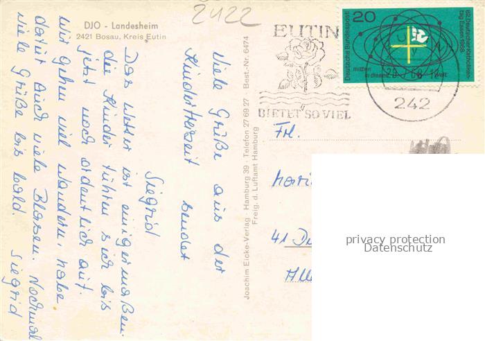 74084475 alte Postkarte Bosau Ostholstein DJO Landesheim Fliegeraufnahme postalisch gelaufen Erhaltung siehe scans [WerneD78] KatCode: 11110001055007