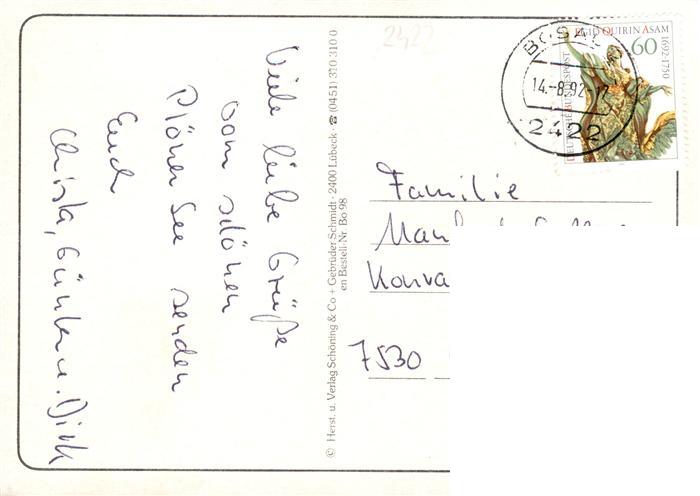 73940322 alte Postkarte Bosau Ostholstein Kirche Anlegesteg Liegewiese Restaurant postalisch gelaufen Erhaltung siehe scans [FriedD77] KatCode: 11110001055007