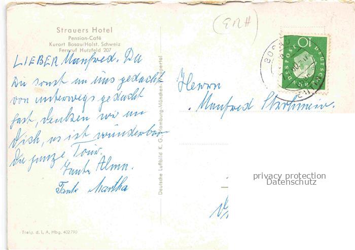 74043697 alte Postkarte Bosau Ostholstein Strauers Hotel Pension-Café postalisch gelaufen Fliegeraufnahme Erhaltung siehe scans [FriedD77] KatCode: 11110001055007
