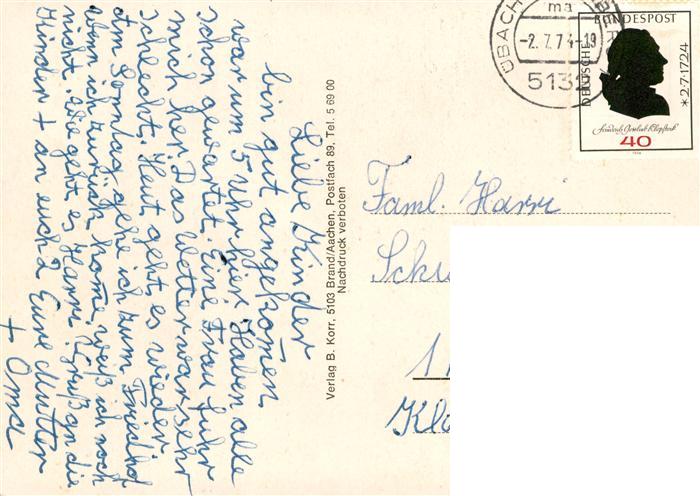 73878618 alte Postkarte Boscheln uebach-Palenberg Nikolaus-Becker-Strasse Goethestrasse Hofstrasse Roechlingstrasse Schule postalisch gelaufen Erhaltung siehe scans [FriedD77] KatCode: 11110005370028