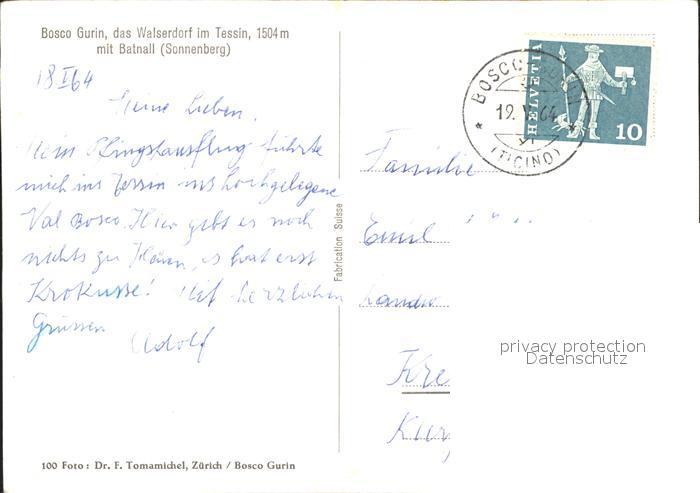 11642384 alte Postkarte Bosco Gurin Panorama mit Batnall postalisch gelaufen Erhaltung siehe scans KatCode: 11470210680388