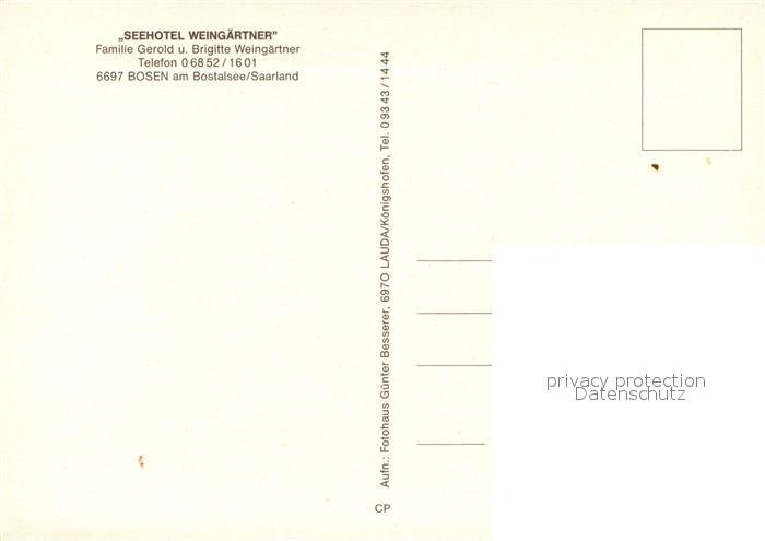 73608979 Bosen Nohfelden Seehotel Weingaertner postalisch nicht gelaufen Erhaltung siehe scans [WerneD78] KatCode: 11110010046114
