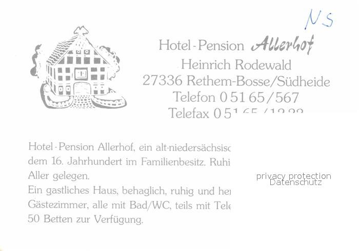 72650643 Bosse Rethem Hotel Pension Allerhof Gastraum Garten TV Raum postalisch nicht gelaufen Werbekarte (keine Postkarte) Erhaltung siehe scans [WerneD78] KatCode: 11110003358018