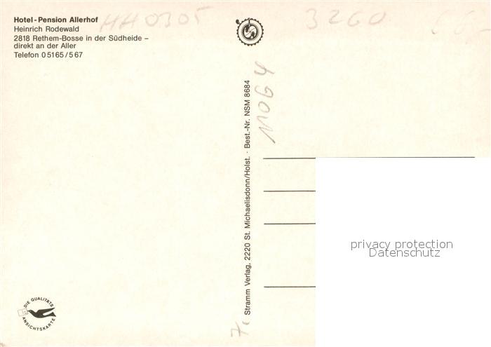 73641607 Bosse Rethem Hotel Pension Allerhof Gastraum Garten postalisch nicht gelaufen Erhaltung siehe scans [FriedD77] KatCode: 11110003358018