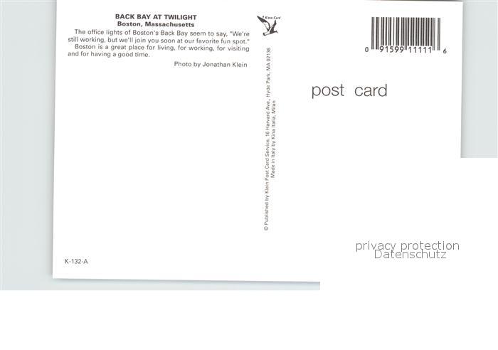 72583046 Boston Massachusetts Back Bay at twilight postalisch nicht gelaufen Erhaltung siehe scans [FriedD77] KatCode: 14140230000000