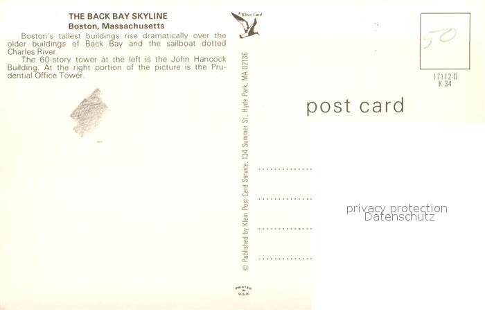 73130619 Boston Massachusetts Back Bay Skyline postalisch nicht gelaufen Erhaltung siehe scans [KathaD81] KatCode: 14140230000000