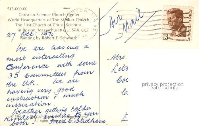 73061584 old postcard Boston Massachusetts Christian Science Church Center Air view postalisch gelaufen Erhaltung siehe scans [WerneD78] KatCode: 14140230000000