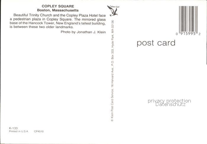 72555729 Boston Massachusetts Copley Square postalisch nicht gelaufen Erhaltung siehe scans [AndreD76] KatCode: 14140230000000
