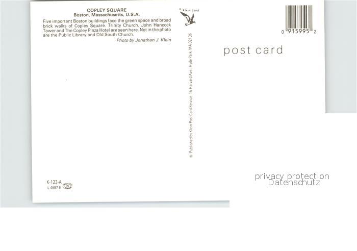 72583047 Boston Massachusetts Copley Square postalisch nicht gelaufen Erhaltung siehe scans [FriedD77] KatCode: 14140230000000