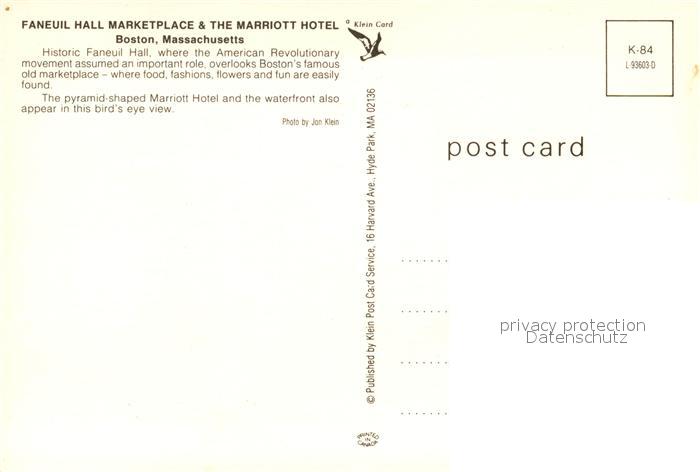 73359651 Boston Massachusetts Faneuil Hall Market Place and the Marriott Hotel postalisch nicht gelaufen Erhaltung siehe scans [WerneD78] KatCode: 14140230000000