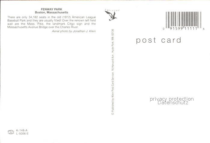 72555742 Boston Massachusetts Fliegeraufnahme Fenway Park postalisch nicht gelaufen Erhaltung siehe scans [AndreD76] KatCode: 14140230000000