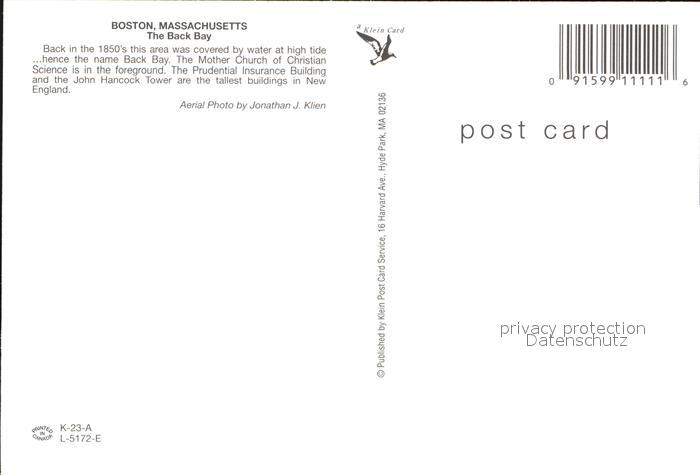 72556317 Boston Massachusetts Fliegeraufnahme The Back Bay postalisch nicht gelaufen Erhaltung siehe scans [AndreD76] KatCode: 14140230000000