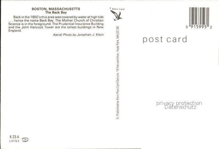 72556320 Boston Massachusetts Fliegeraufnahme The Back Bay postalisch nicht gelaufen Erhaltung siehe scans [AndreD76] KatCode: 14140230000000
