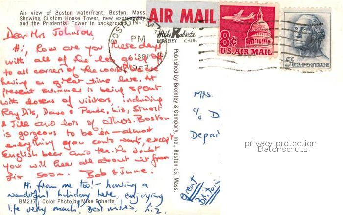 73130338 old postcard Boston Massachusetts Fliegeraufnahmeb Prudential Tower postalisch gelaufen Erhaltung siehe scans [NatalD47] KatCode: 14140230000000