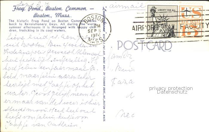 72289705 old postcard Boston Massachusetts Frog Bond Boston Common postalisch gelaufen Erhaltung siehe scans KatCode: 14140230000000