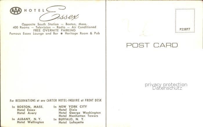 72288050 Boston Massachusetts Hotel Essex postalisch nicht gelaufen Erhaltung siehe scans KatCode: 14140230000000