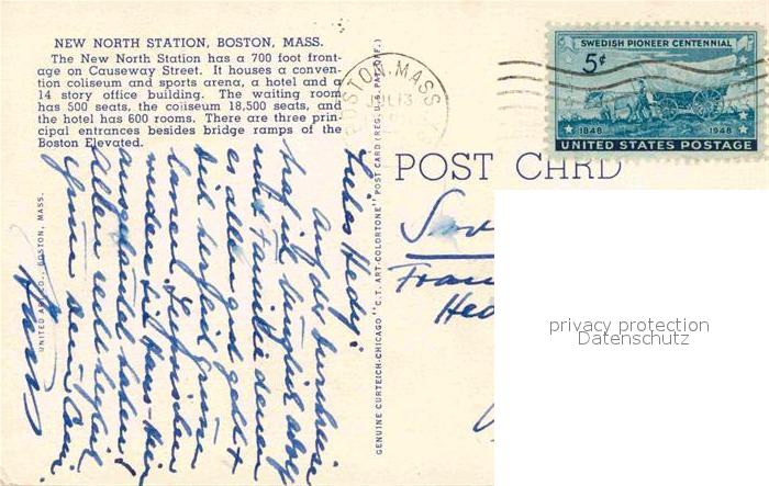 72748896 old postcard Boston Massachusetts New North Station Illustration postalisch gelaufen Erhaltung siehe scans [FriedD77] KatCode: 14140230000000