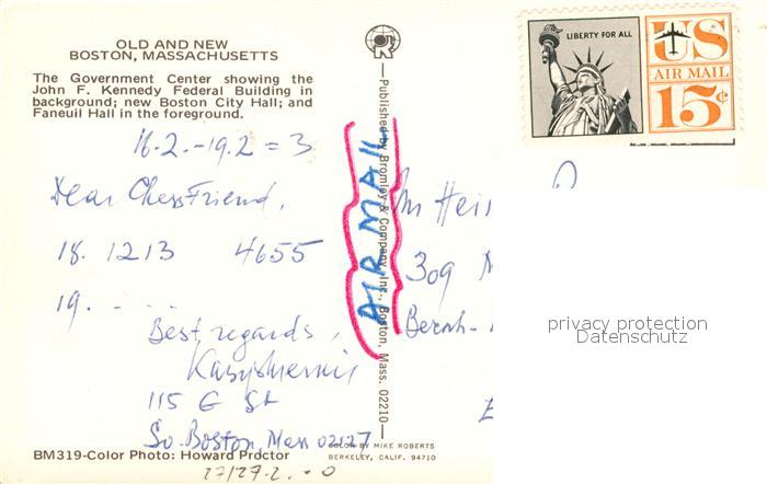 72986769 Boston Massachusetts Old and New City Government Center John F Kennedy Federal Building City Hall Faneuil Hall postalisch nicht gelaufen Erhaltung siehe scans [FriedD77] KatCode: 14140230000000
