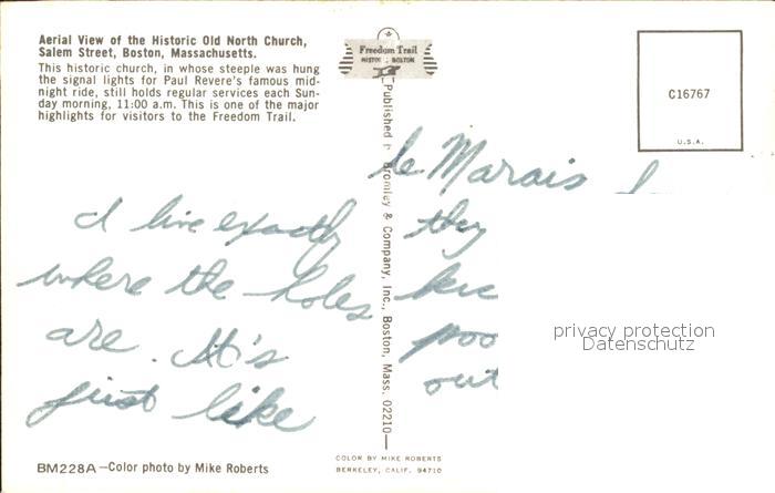71940928 Boston Massachusetts Old North Church aerial view postalisch nicht gelaufen Erhaltung siehe scans KatCode: 14140230000000