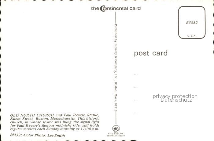 72411471 Boston Massachusetts Old North Church and Paul Revere Statue postalisch nicht gelaufen Erhaltung siehe scans KatCode: 14140230000000