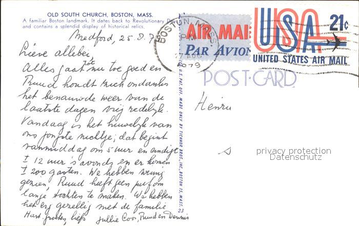 72230262 old postcard Boston Massachusetts Old South Church postalisch gelaufen Erhaltung siehe scans KatCode: 14140230000000