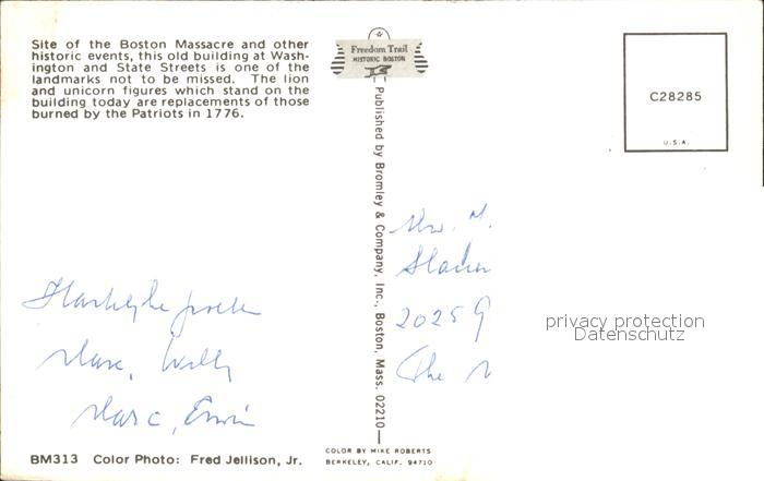 72271999 Boston Massachusetts Old State House postalisch nicht gelaufen Erhaltung siehe scans KatCode: 14140230000000