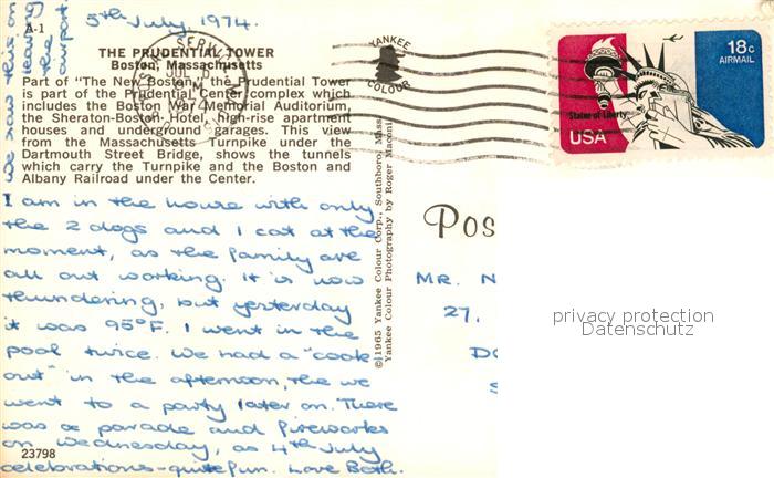 73130588 old postcard Boston Massachusetts Prudential Tower postalisch gelaufen Erhaltung siehe scans [KathaD81] KatCode: 14140230000000